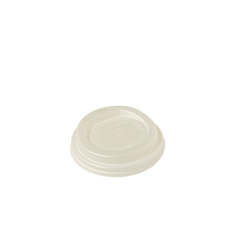 Compostable White PLA Lid, 80mm diameter. Packed in cartons of 1000.